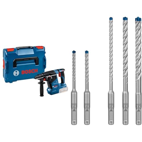 Bosch Professional 18V System Cordless Rotary Hammer GBH 18V-24 C + 5X Expert SDS plus-7X Hammer Drill Bit Set (for Soft Stone, Hard Stone, Ø 5-10 mm)