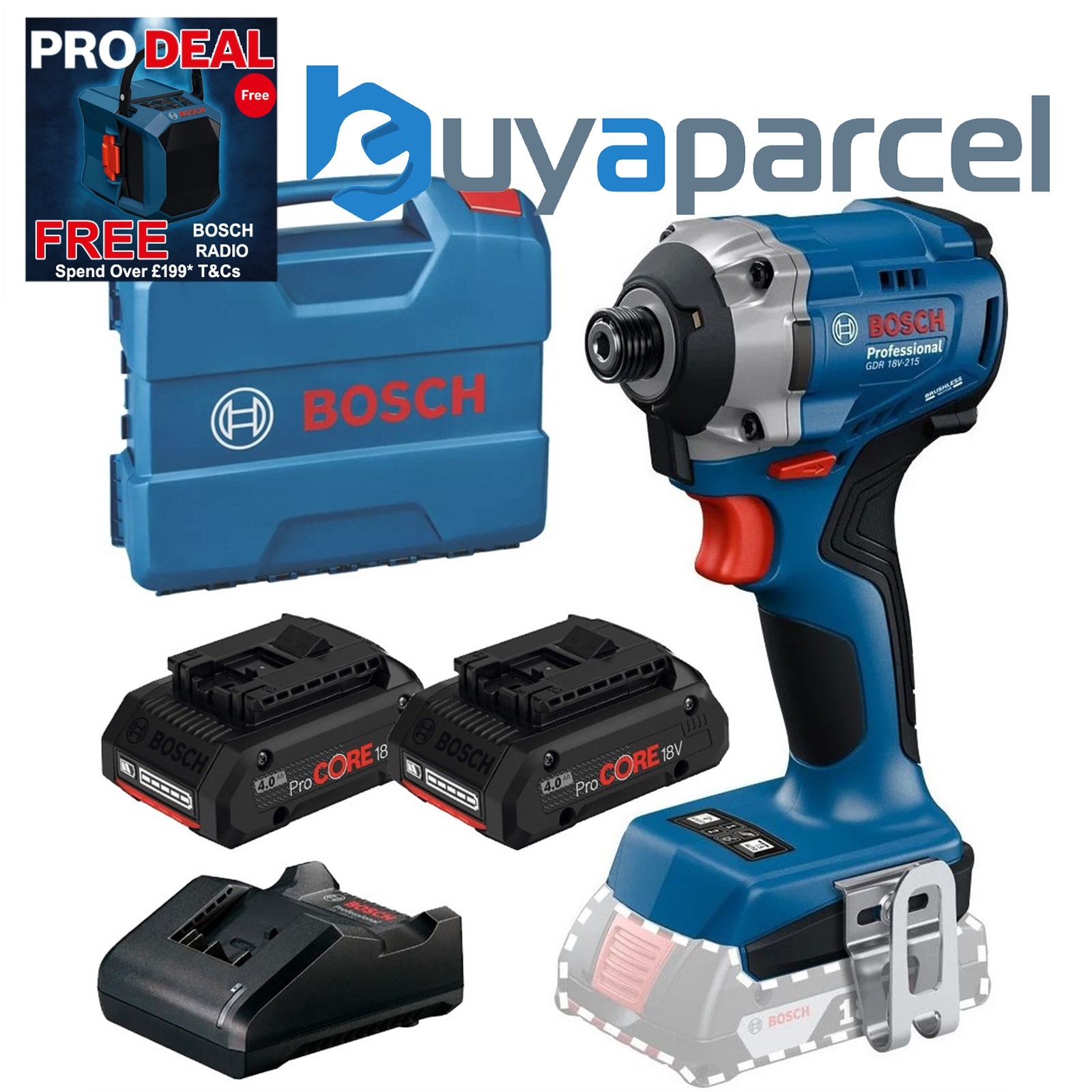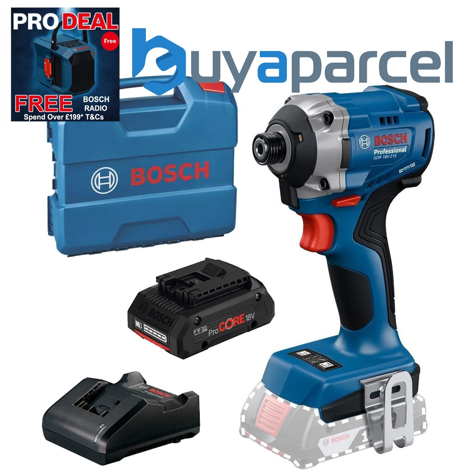 Bosch GDR 18V-215 18v Impact Driver Brushless + 4ah Pro Core Battery + Case