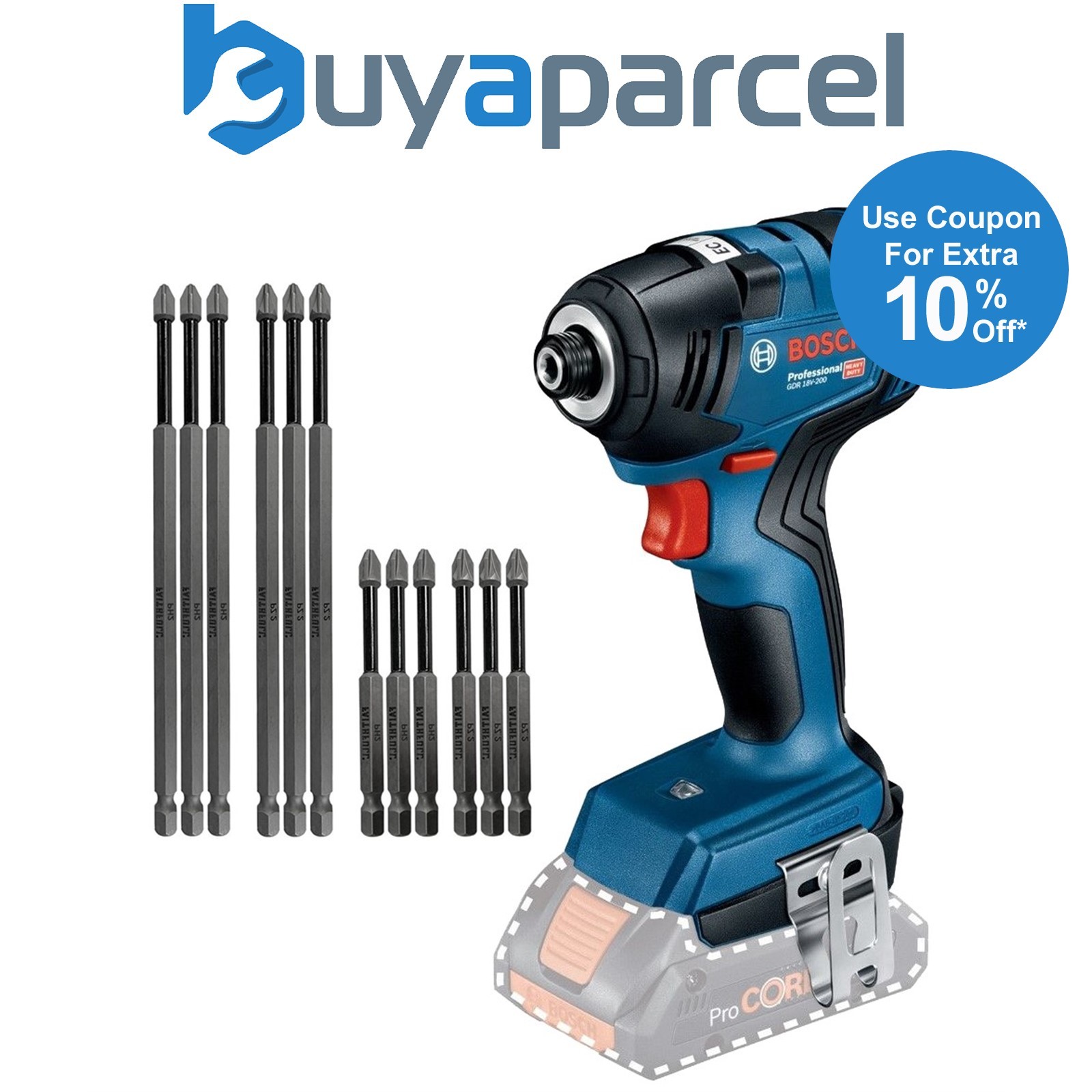 Bosch GDR18V-200 18V Impact Driver Brushless + 12 Piece Long Bit Set