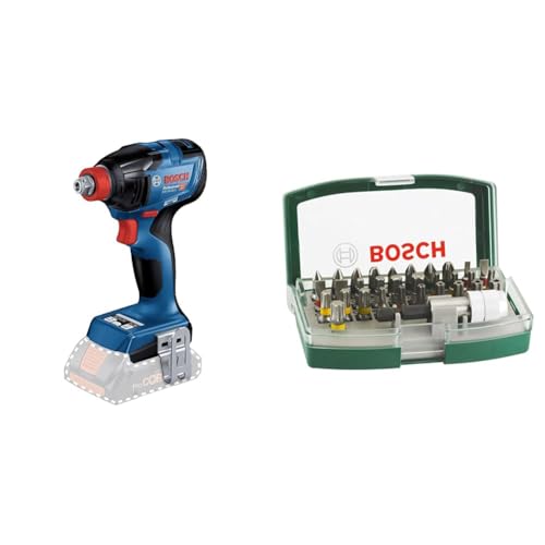 Bosch Professional 18V System Cordless Impact Driver GDX 18V-210 C (max. Torque 210 Nm, Without Battery/Charger) + 32pc. Screwdriver Bit Set (PH-, PZ-, Hex-, T-, TH-, S-Bit, Accessories)