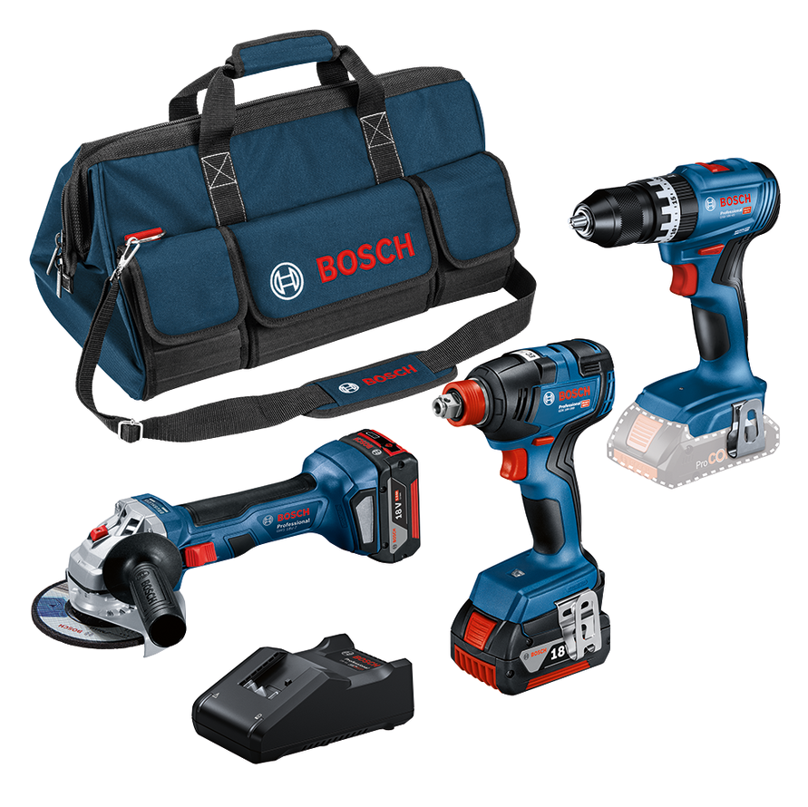 Bosch Professional Combo Kit GSB 18V-45 + GDX 18V-200 + GWS 18V-7 (incl. 2x5.0 Ah Batteries, Charger GAL 18V-40, in Medium Tool Bag)