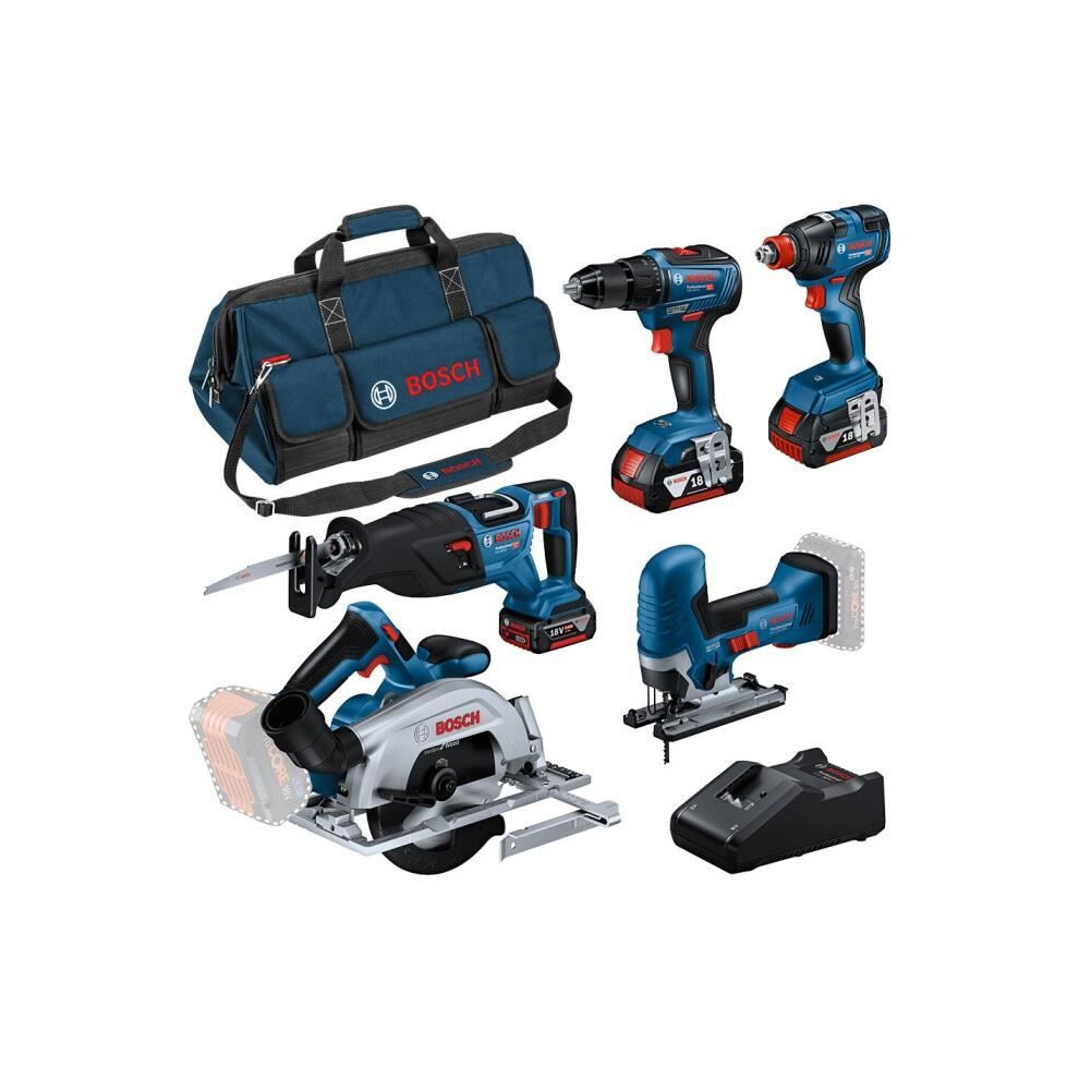 Pack of 5 tools: GSR 18V-55 + GST 18V-125 S + GKS 18V-57-2 + GSA 18V-28 + GDX 18V-200 + 3 batteries 4.0Ah + GAL 18V-40 + bag