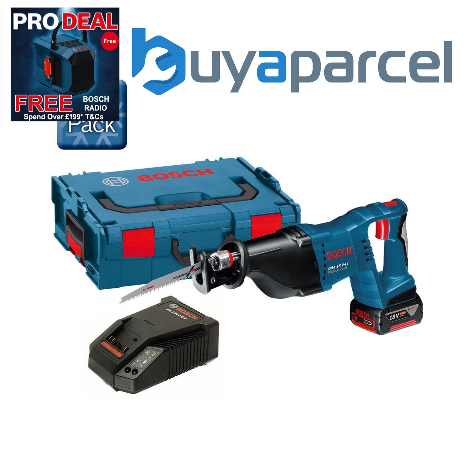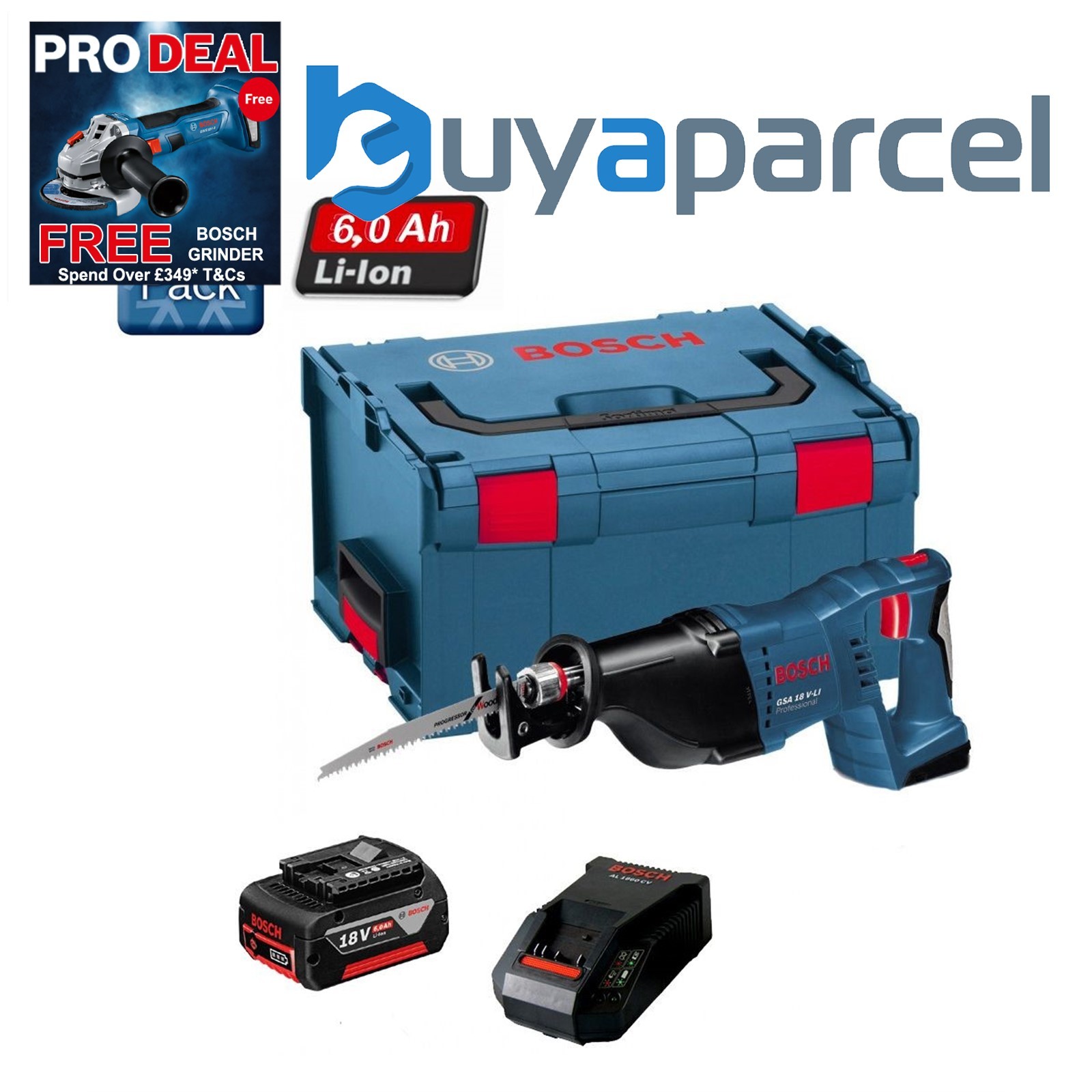 Bosch 18v GSA 18VLI Li-Ion Cordless Recip Saw + 1 x 6.0ah, Charger + LBOXX