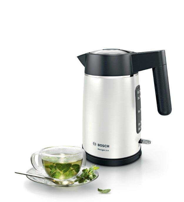 Bosch DesignLine TWK3P421GB Stainless Steel Cordless Kettle, 1.7 Litres, 3000W - White & Black
