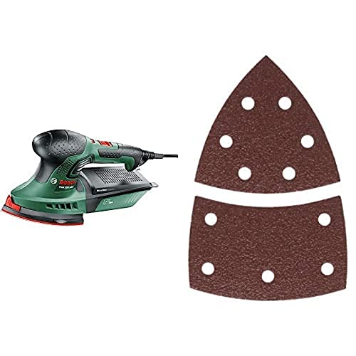 Bosch Home and Garden Multi-Sander PSM 200 AES (2X Sanding Papers, Rectangular Sanding Plate, in case) + 10 pc. Santing Sheet Set (Grit 80)