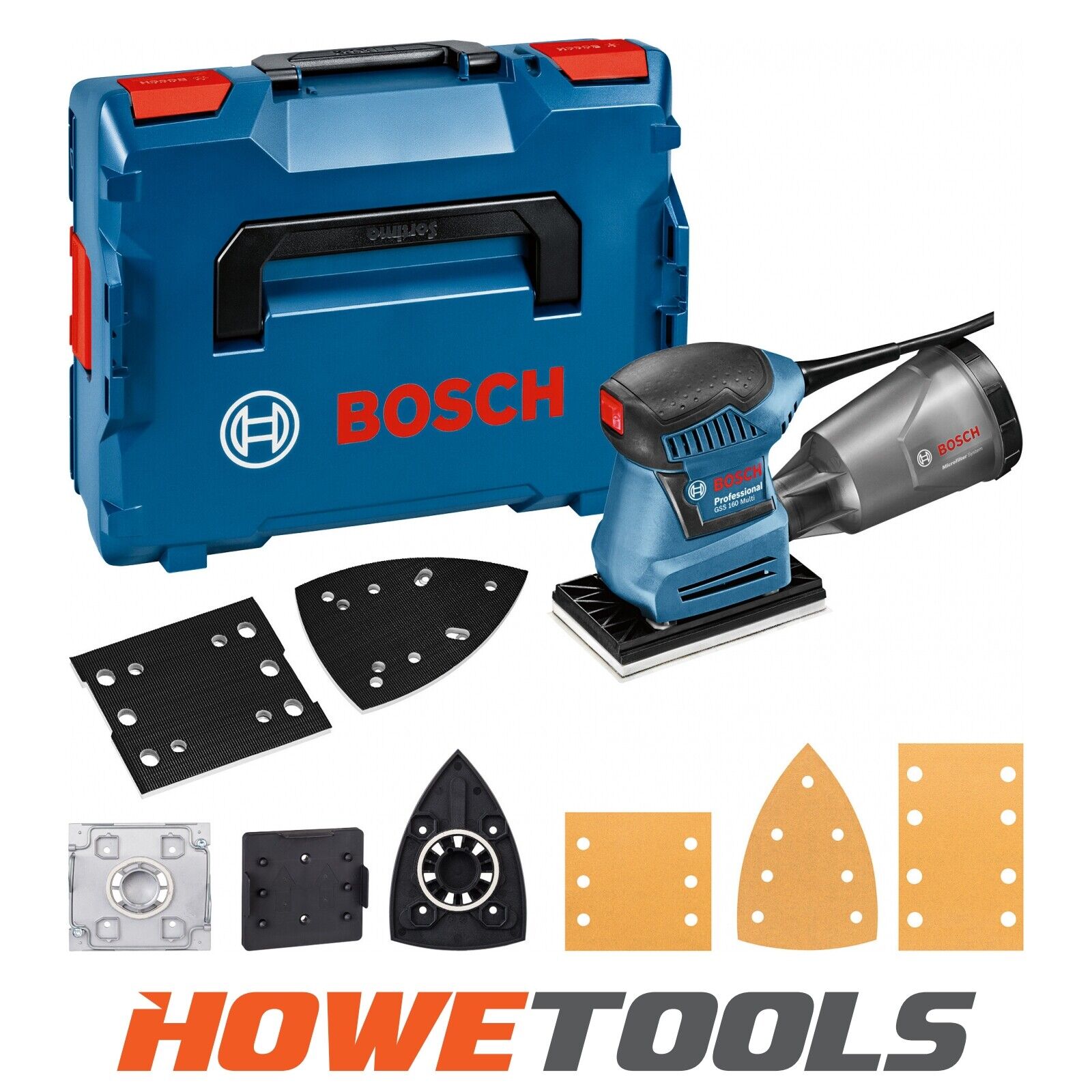 Bosch Professional Orbital Sander GSS 160 Multi (240V, Hole punch, Screwdriver, Dust box incl. Microfilter, 3 x sanding sheet C470, Delta base plate, 2x Base plate, L-BOXX 136)