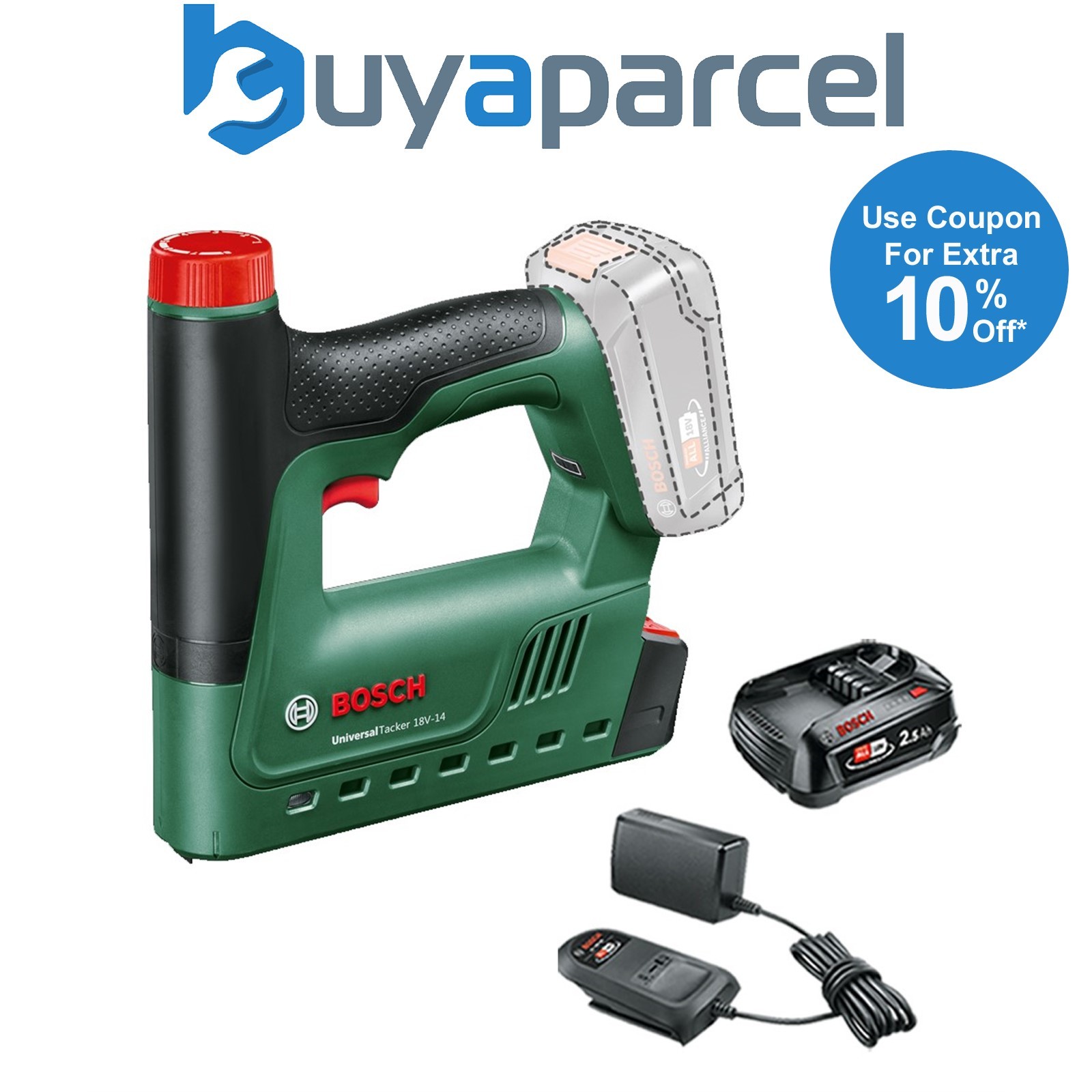 Bosch 06032A7000 UniversalTacker 18v Cordless Stapler Nailer + 2.5AH Battery Kit