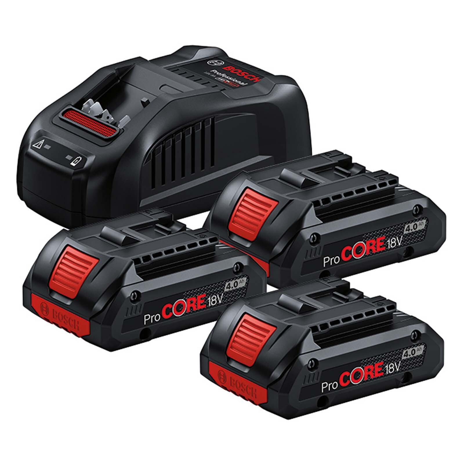 Bosch PRO 18v ProCore Cordless 3 Battery 4ah and Charger Set 4ah