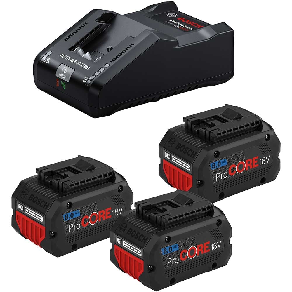 Bosch PRO 18v ProCore Cordless 3 Battery 8ah and Charger Set 8ah