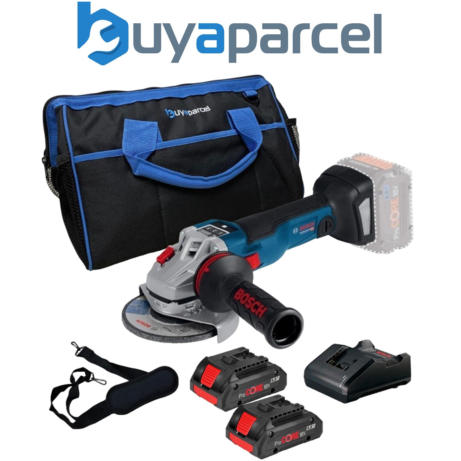 Bosch GWS V10 115mm Brushless Cordless 18v Angle Grinder x2 4AH ProCore + 16"Bag