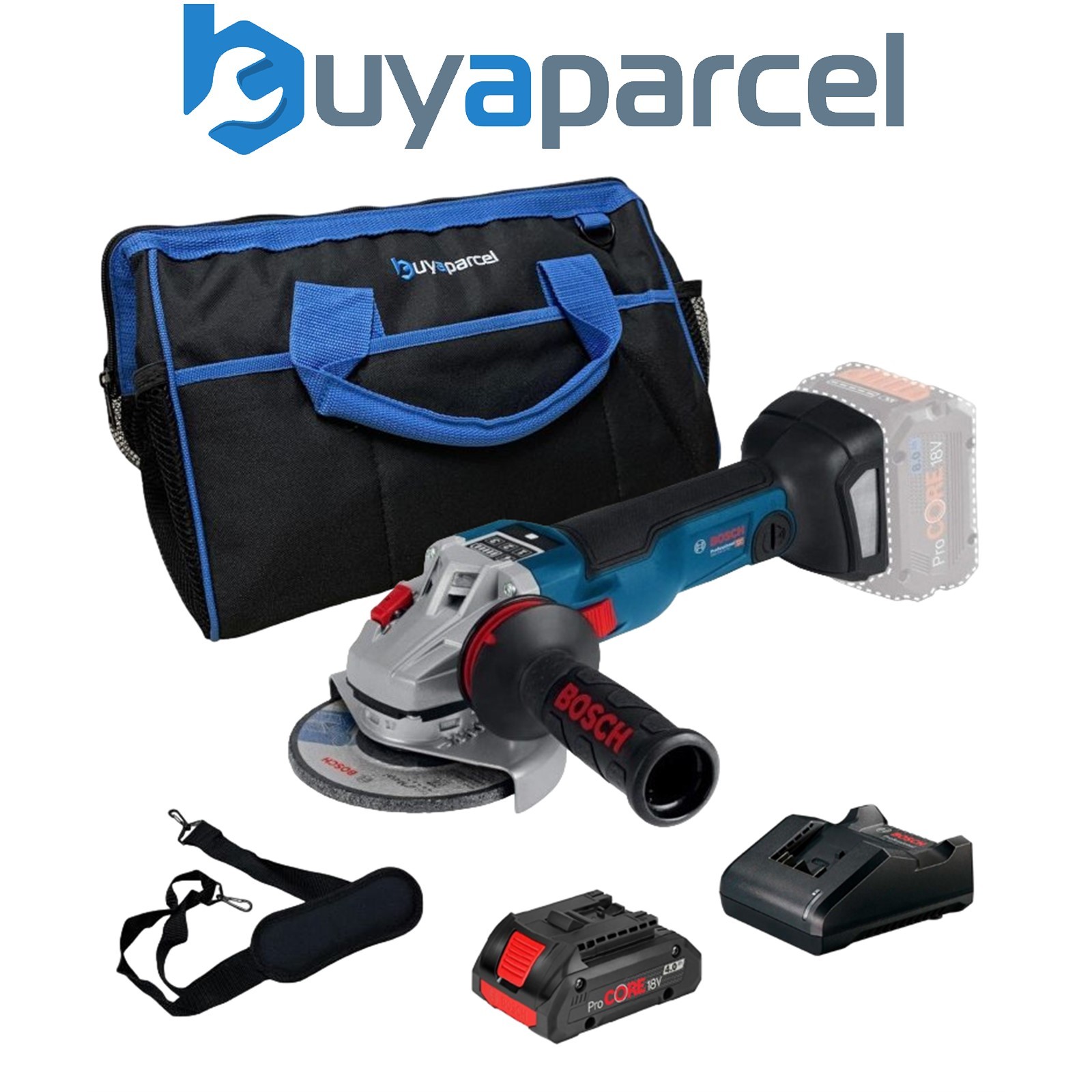 Bosch GWS V10 115mm Brushless Cordless 18v Angle Grinder + 4AH ProCore + 16" Bag