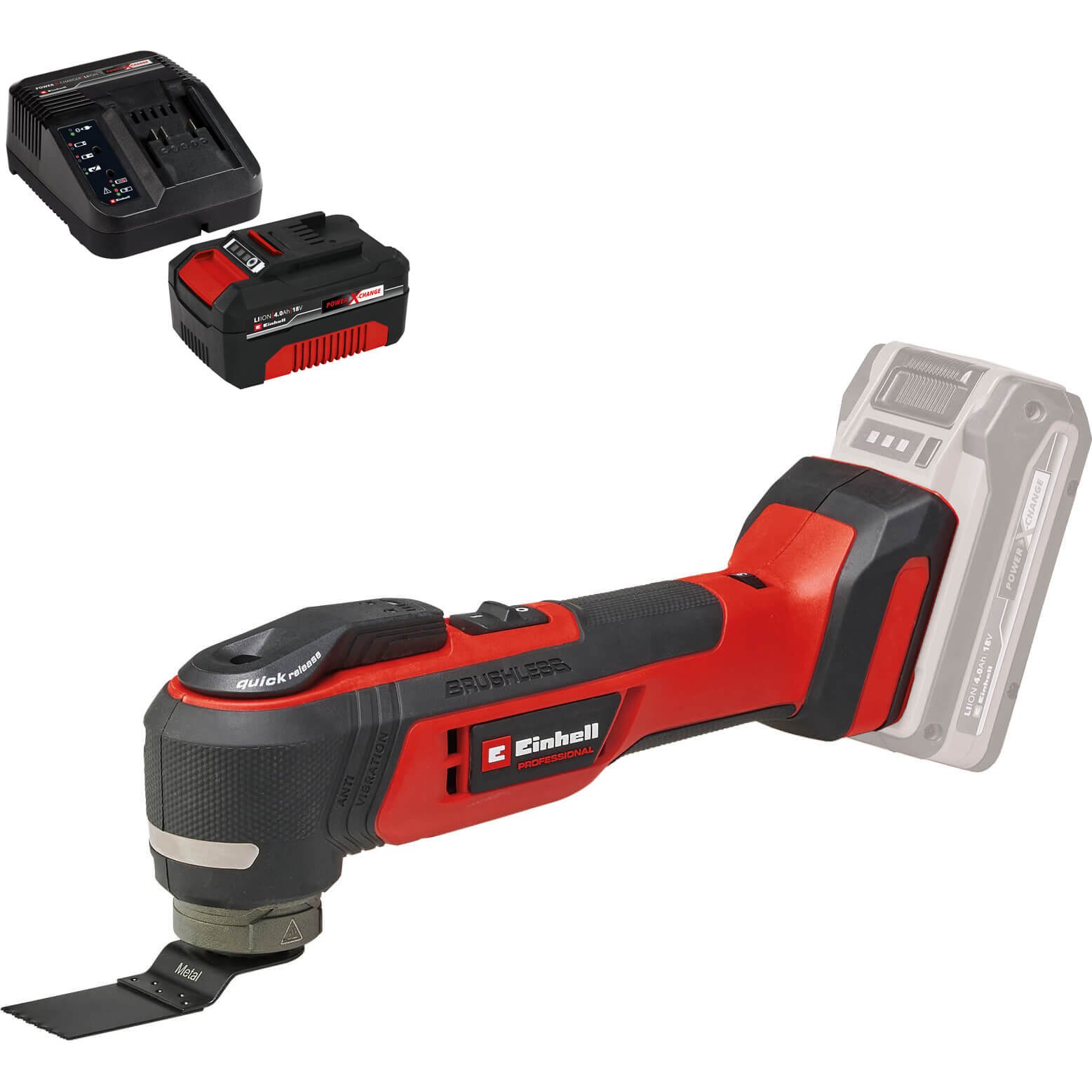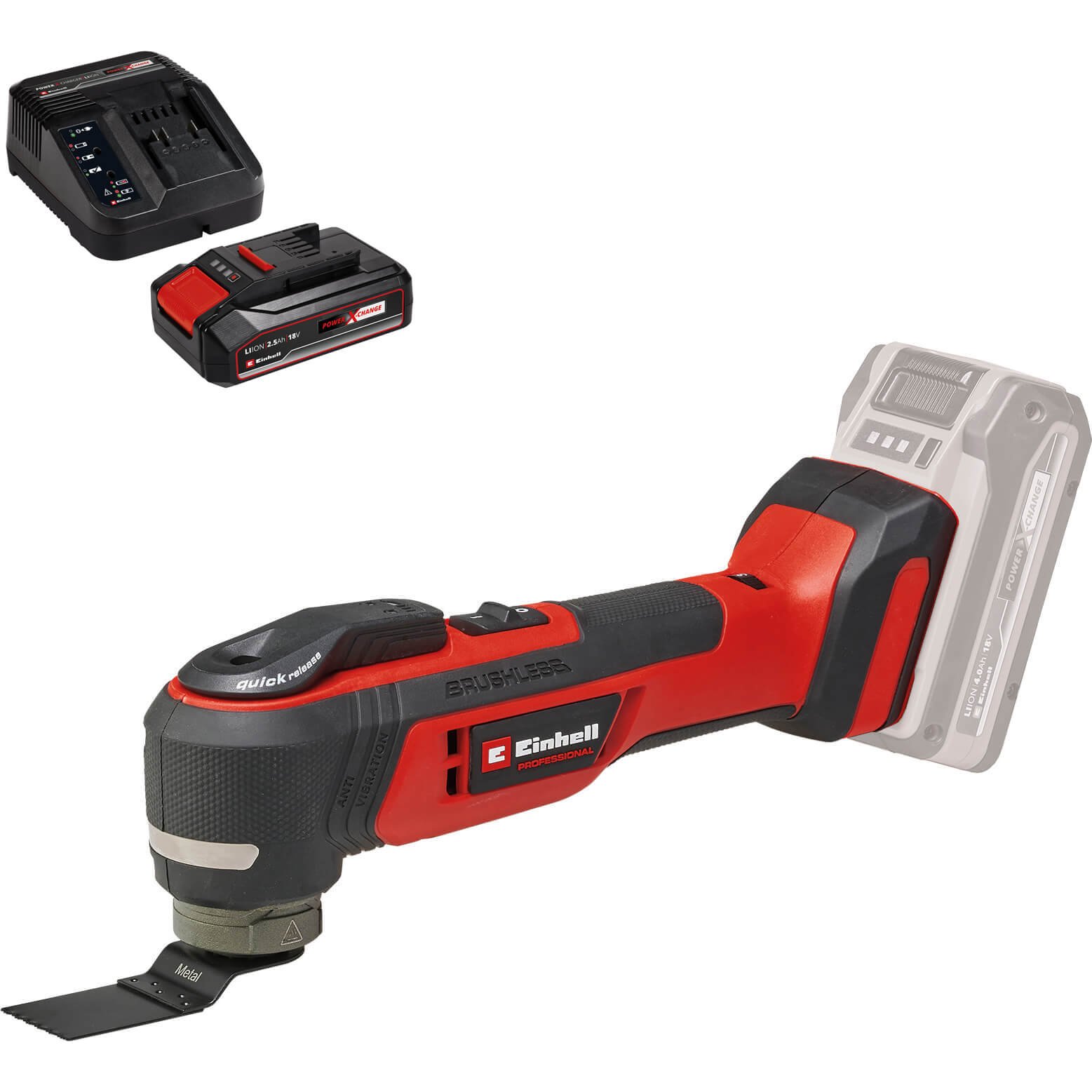 Einhell Professional TP-MG 18 Li BL 18v Cordless Brushless OIS Oscillating Multi Tool 2 x 4ah Li-ion Battery Charger No Case