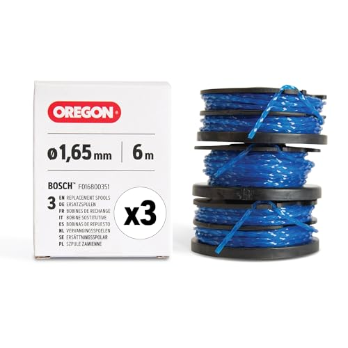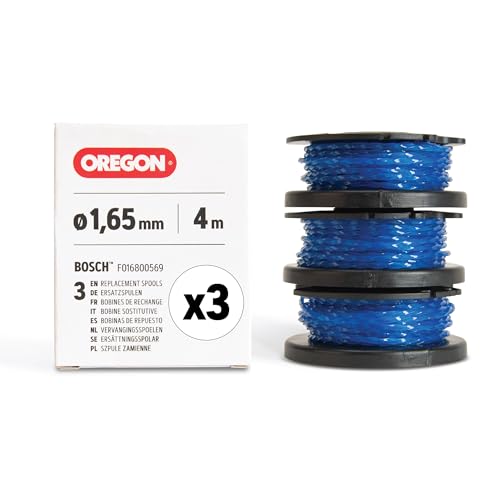 Oregon Pre-Filled Strimmer Spool Line for Bosch, Guaranteed Fit for F016800569, Fits Bosch EasyGrassCut Strimmers, Fitted with Premium Oregon Gatorline Square Twist Spool 1.65mm, 3-Pack