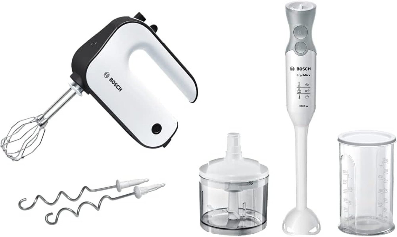 Bosch CleverMixx Styline MFQ4020GB Hand Mixer 450 W - White & Black & ErgoMixx MSM66020GB Hand Blender 600W - White