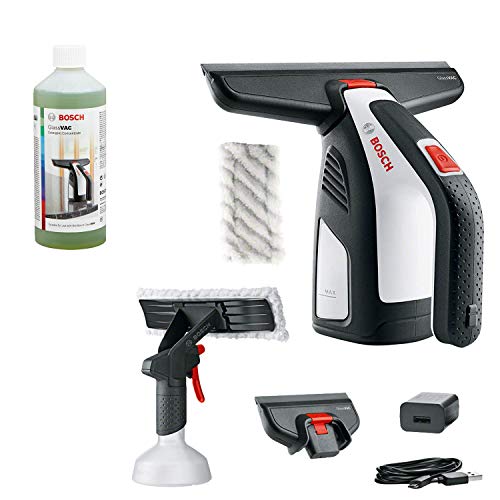 Bosch GlassVAC Cordless Window Vac for Windows, Tiles, Mirrors and Shower (Running Time Approximately 35 Windows, in Carton Packaging) + Bosch GlassVAC Detergent