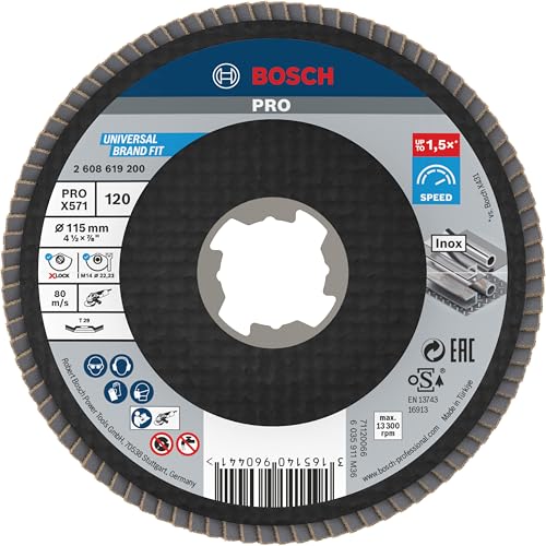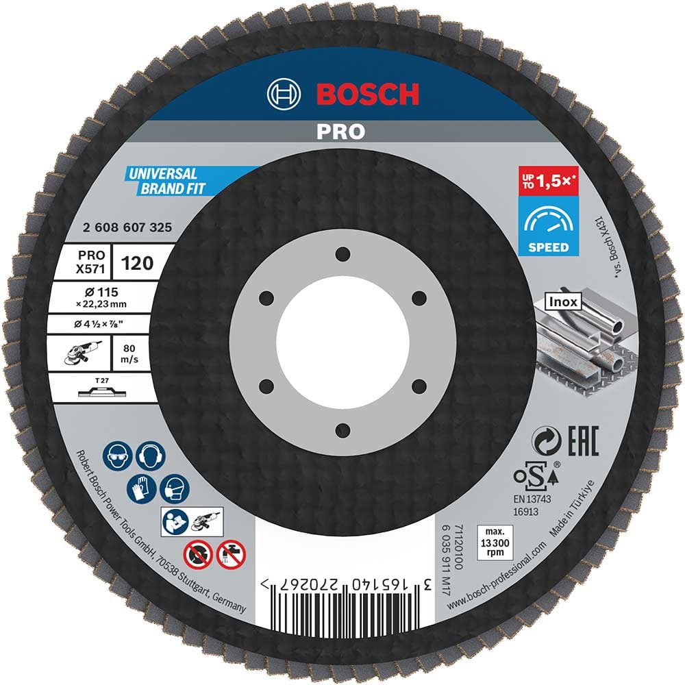 Bosch 1x PRO Metal X571 Flap Disc Straight Version Fiber for Small Angle Grinders (for Steel, Stainless steel, Ø 115 mm, Grit 120, Professional Accessory Small Angle Grinder)
