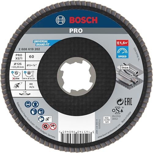 Bosch 1x PRO Metal X571 Flap Disc Straight Version Fiber for Small Angle Grinders (for Steel, Stainless steel, Ø 125 mm, Grit 60, Professional Accessory Small Angle Grinder)