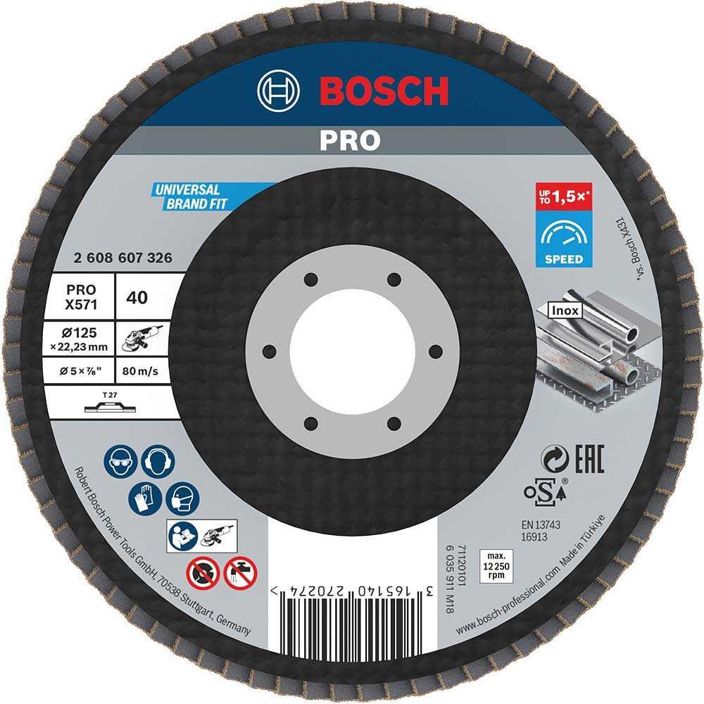 Bosch 2608605450 PRO X571 Flap Disc, Angled 115 x 22.23 x G40 BPA608605450