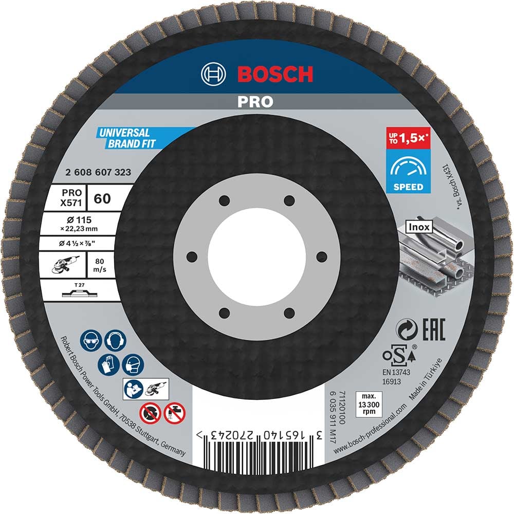 Bosch 2608605451 PRO X571 Flap Disc, Angled 115 x 22.23 x G60 BPA608605451