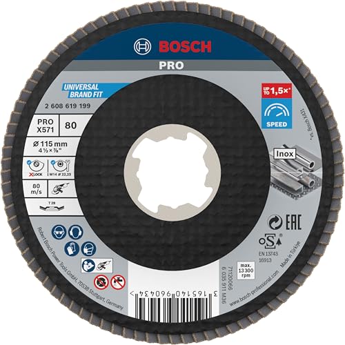 Bosch 1x PRO Metal X571 Flap Disc Angled Version Fiber for Small Angle Grinders (for Steel, Stainless steel, Ø 115 mm, Grit 80, Professional Accessory Small Angle Grinder)