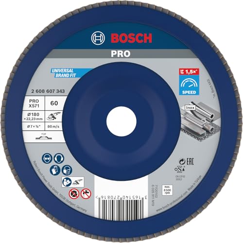 Bosch 1x PRO Metal X571 Flap Disc Straight Version Plastic for Large Angle Grinders (for Steel, Stainless steel, Ø 180 mm, Grit 60, Professional Accessory Large Angle Grinder)