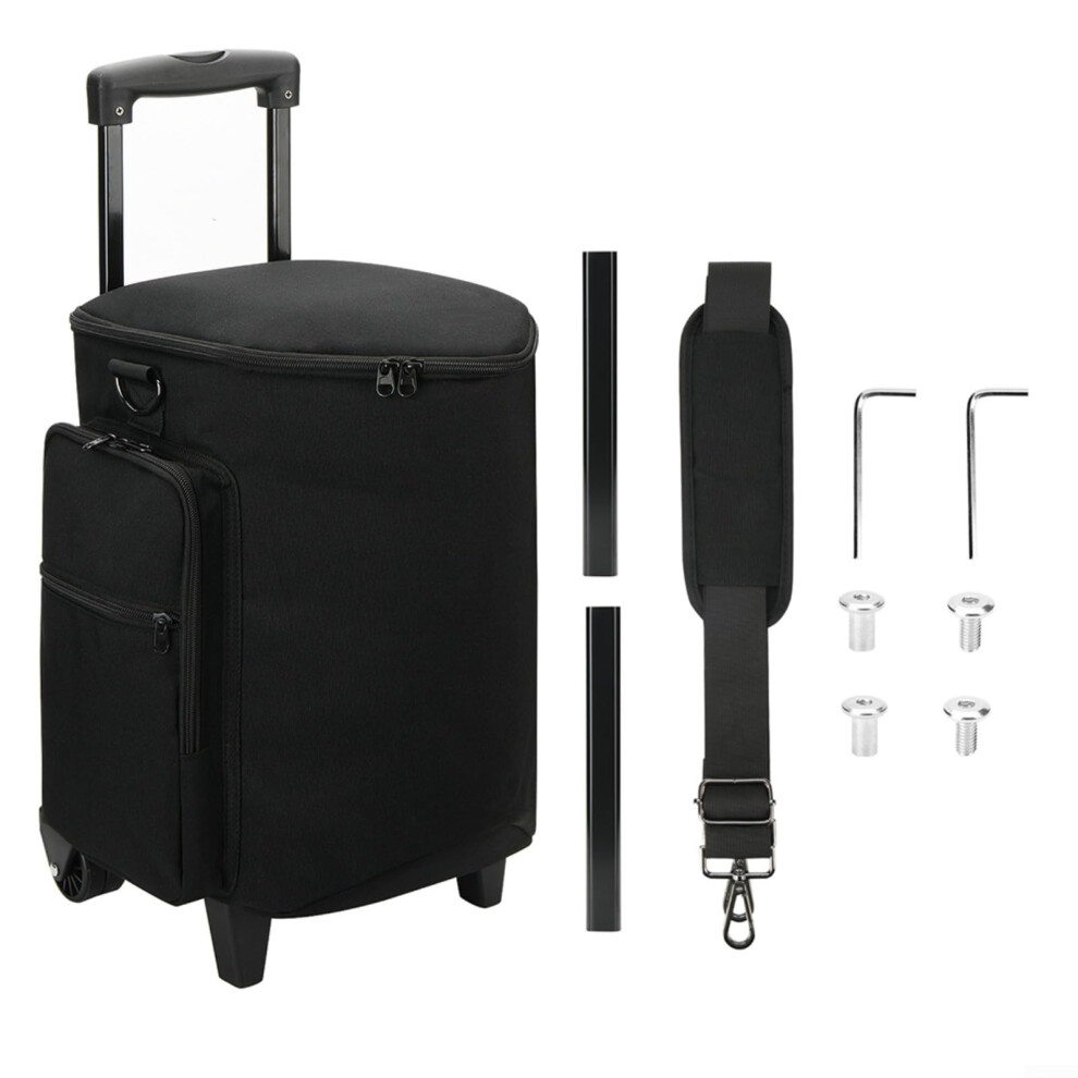 Portable Speaker Rolling Bag with Retractable Handle, Multiple Pockets, Nylon Fabric, Black, 31x27.5x45 cm for Bose S1 Pro