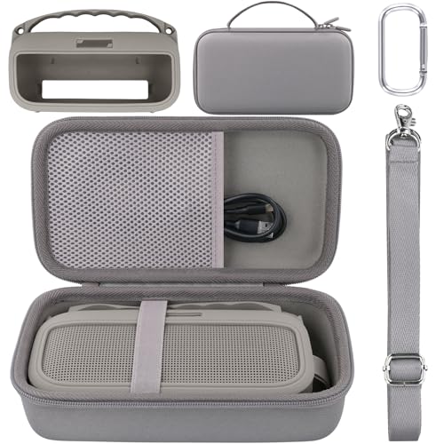 Bluetooth Speaker Case for Bose SoundLink Flex – Durable EVA Hard Shell Protective Cover with Carabiner Clip, Portable Storage Pouch for Travel & Outdoor Use (Grey)