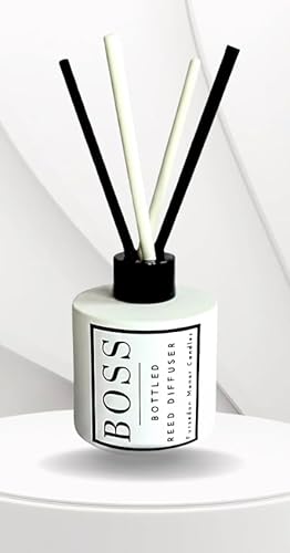 Boss Bottled Reed Diffuser 100ml. Premium aftershave reed diffuser. Complete with 4 extra chunky reeds. Gift Boxed. Stunning Matte white design
