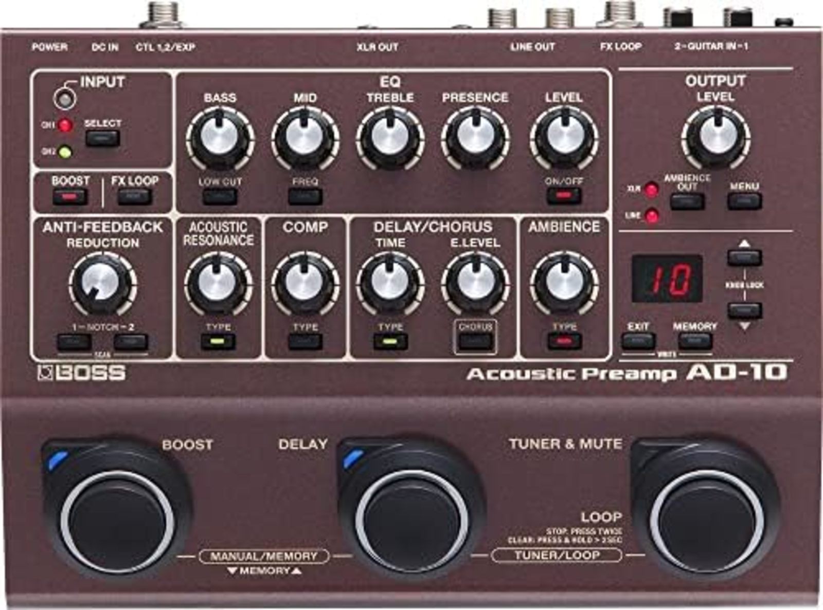 BOSS AD-10 Acoustic Preamp effector DI 4-band EQ XLR stereo output F/S w/Track#