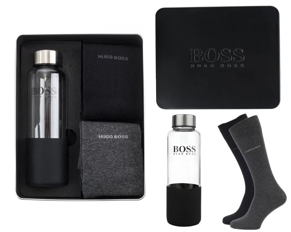 Hugo Boss Premium Gift Set - 2 Pair Socks & Glass Water Bottle Luxury Men's Gift