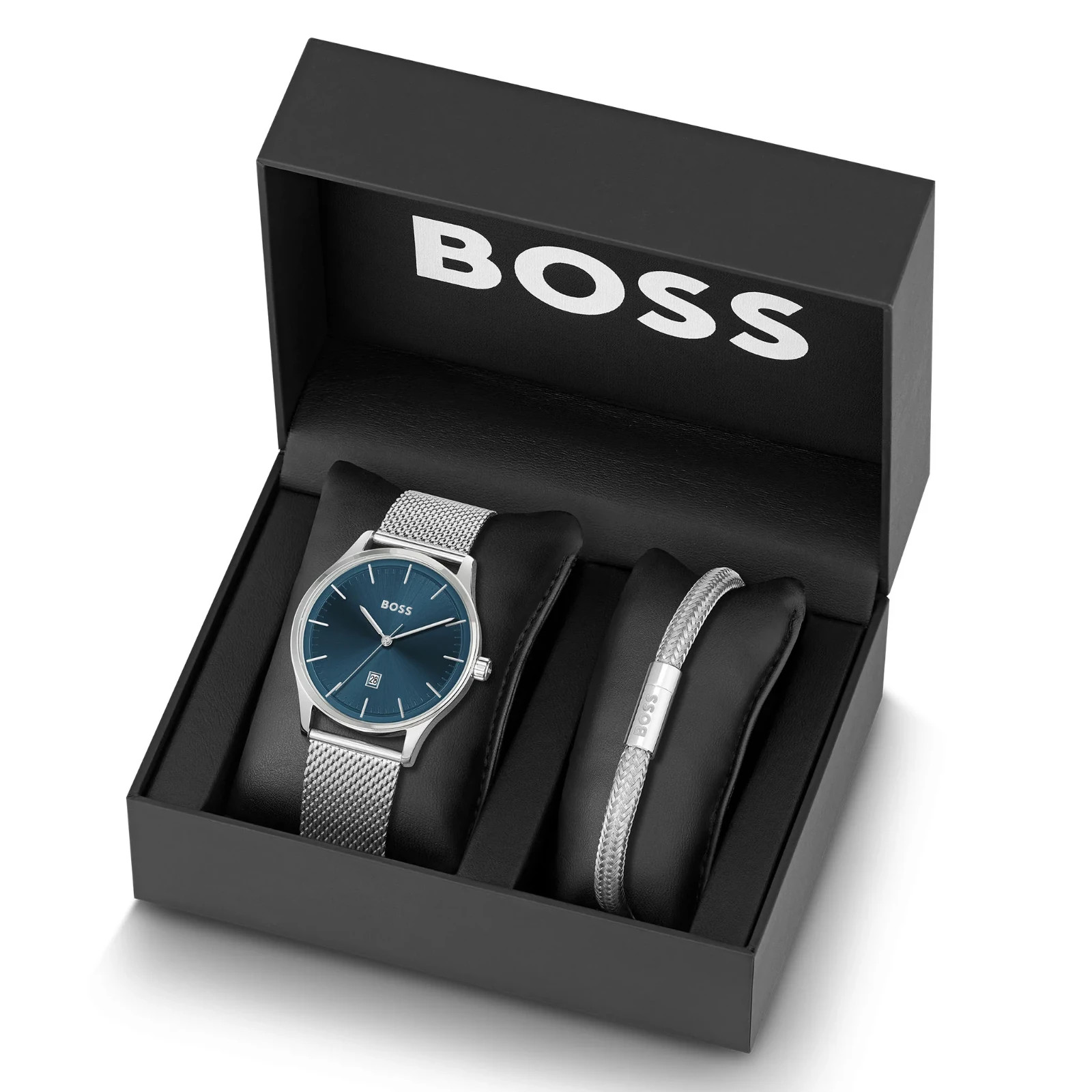 Genuine BOSS Reason B Gift Set 42mm Watch Stainess Steel & Blue Dial 1570160