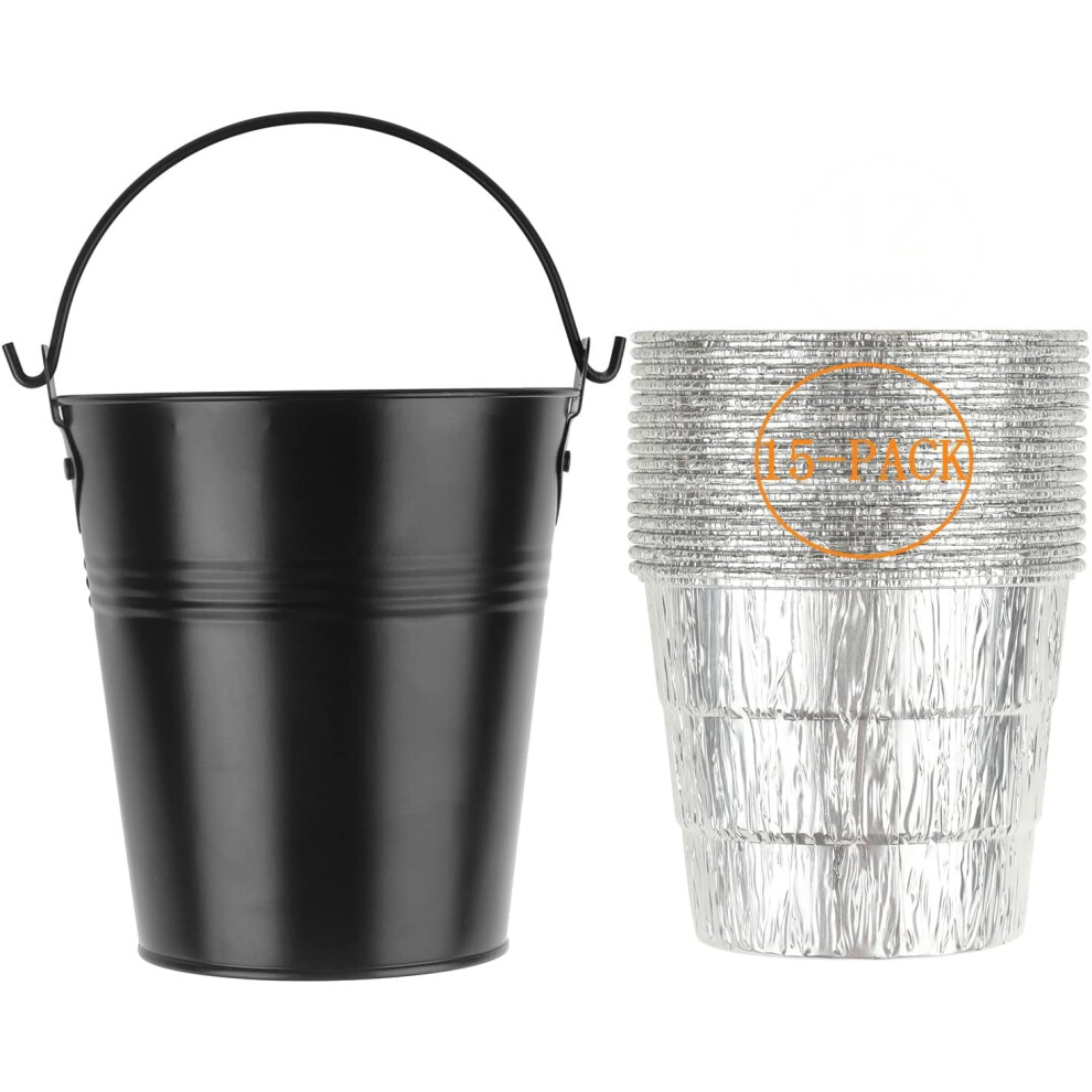 QuliMetal Drip Bucket and 15-Pack Disposable Foil Liners for Oklahoma Joe's Traeger Pit-Boss Z Grill Camp Chef Grill Grease Liner Fits Most Offs