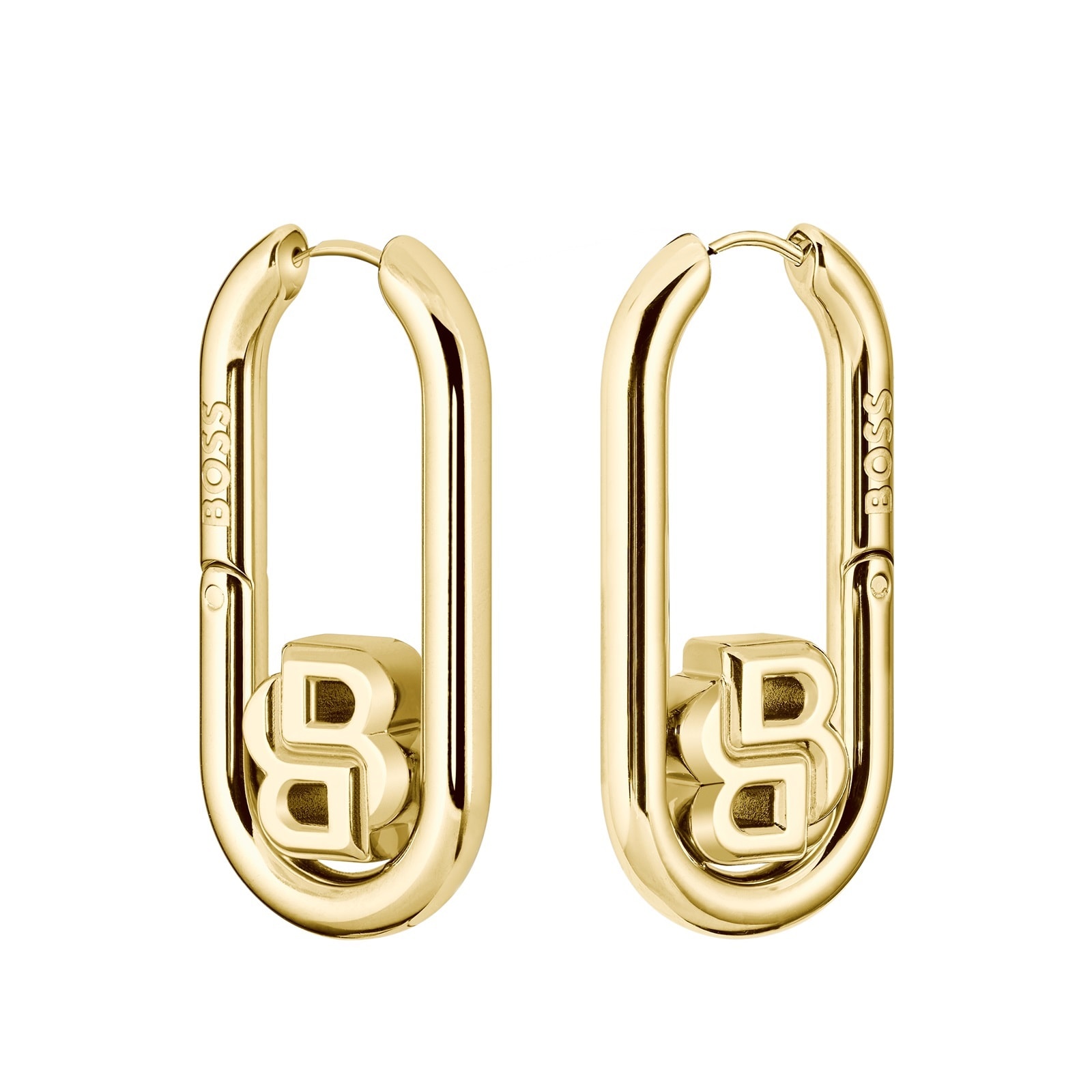 Ladies BOSS Double B Yellow Gold Coloured Hoop Earrings
