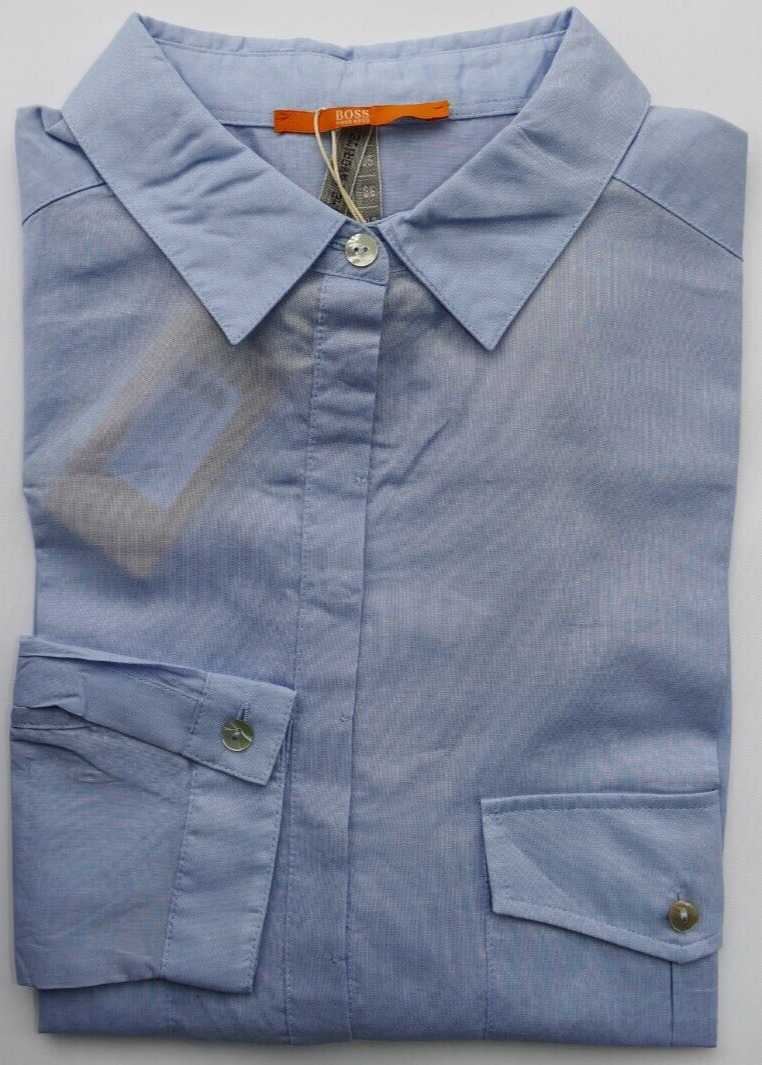 New HUGO BOSS womans ladies baby blue smart casual cotton blouse shirt 8 38 4