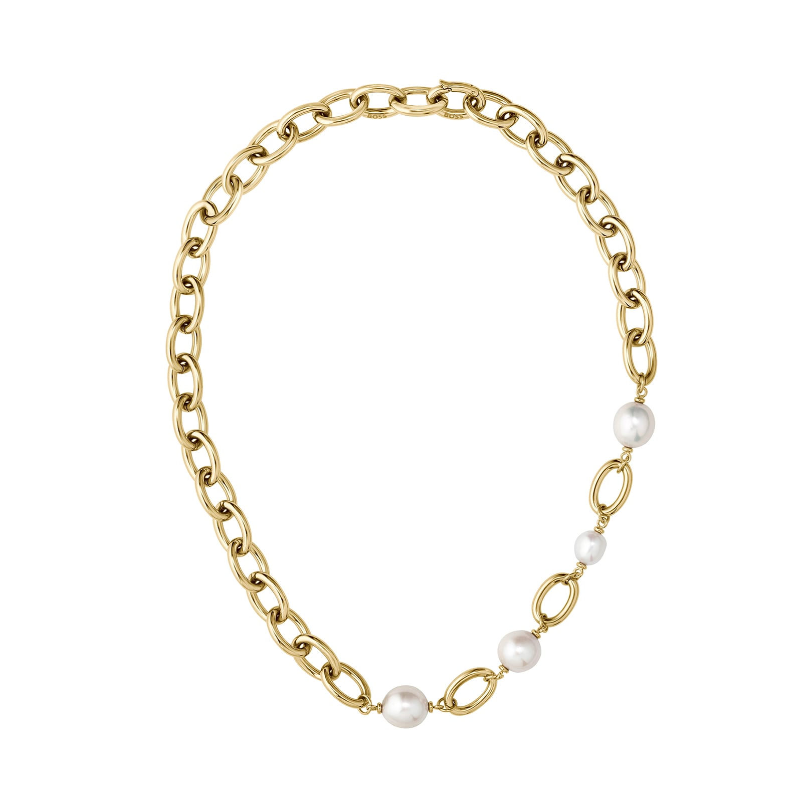 Ladies BOSS Leah Yellow Gold IP Baroque Pearl Necklace