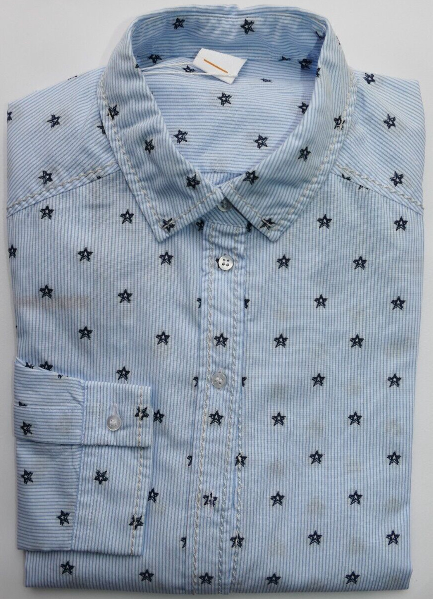 New HUGO BOSS womans ladies blue stars striped casual cotton blouse shirt 8 38 4