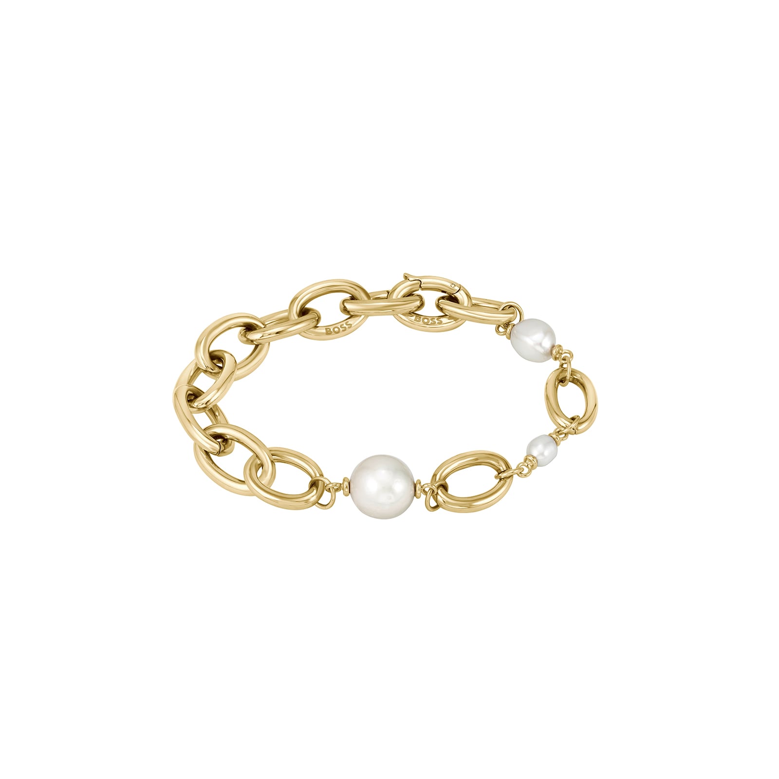 Ladies BOSS Leah Yellow Gold IP Baroque Pearl Bracelet
