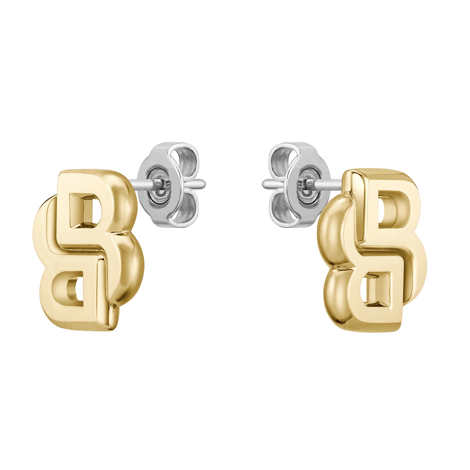 Ladies BOSS Double B Light Yellow Gold Coloured Stud Earrings