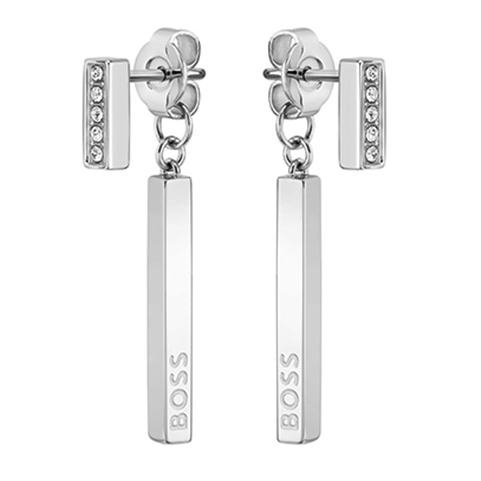 Ladies BOSS Saya Stainless Steel Crystal Drop Earrings