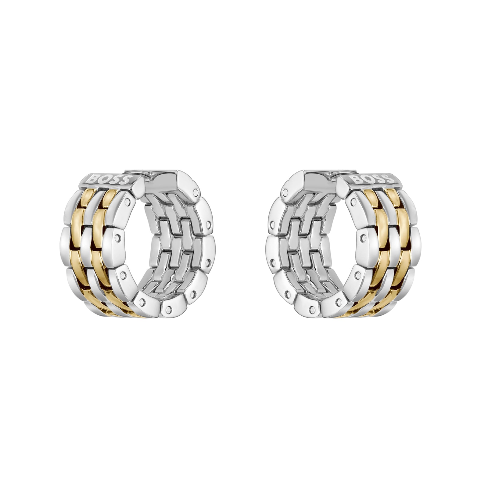 Ladies BOSS Isla Yellow Gold Coloured and Stainless Steel Mesh Hoop Earrings