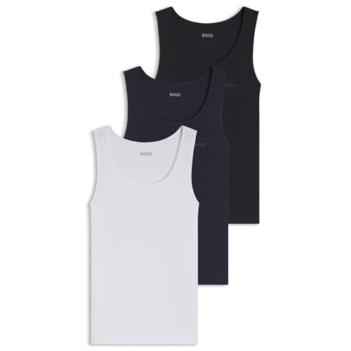 Boss 3 Pack Mens Classic Vest - Black Cotton - Size Small