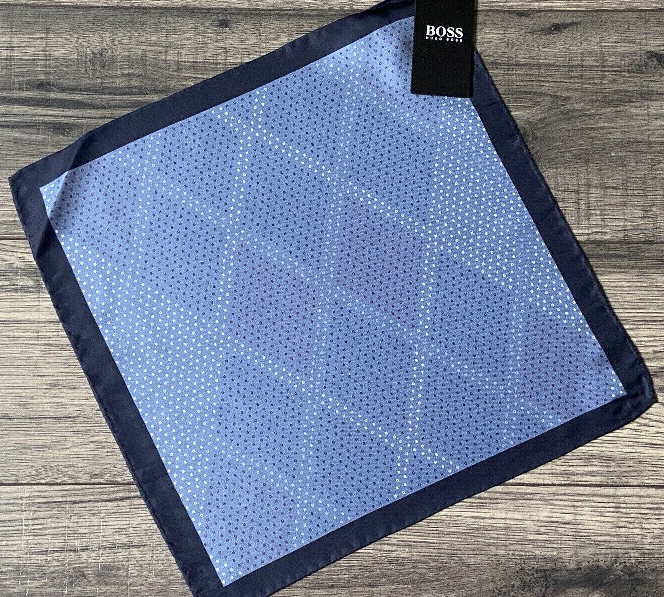 HUGO BOSS SILK POCKET SQUARE ALL OVER MICRO LOGO MADE IN ITALY BNWT