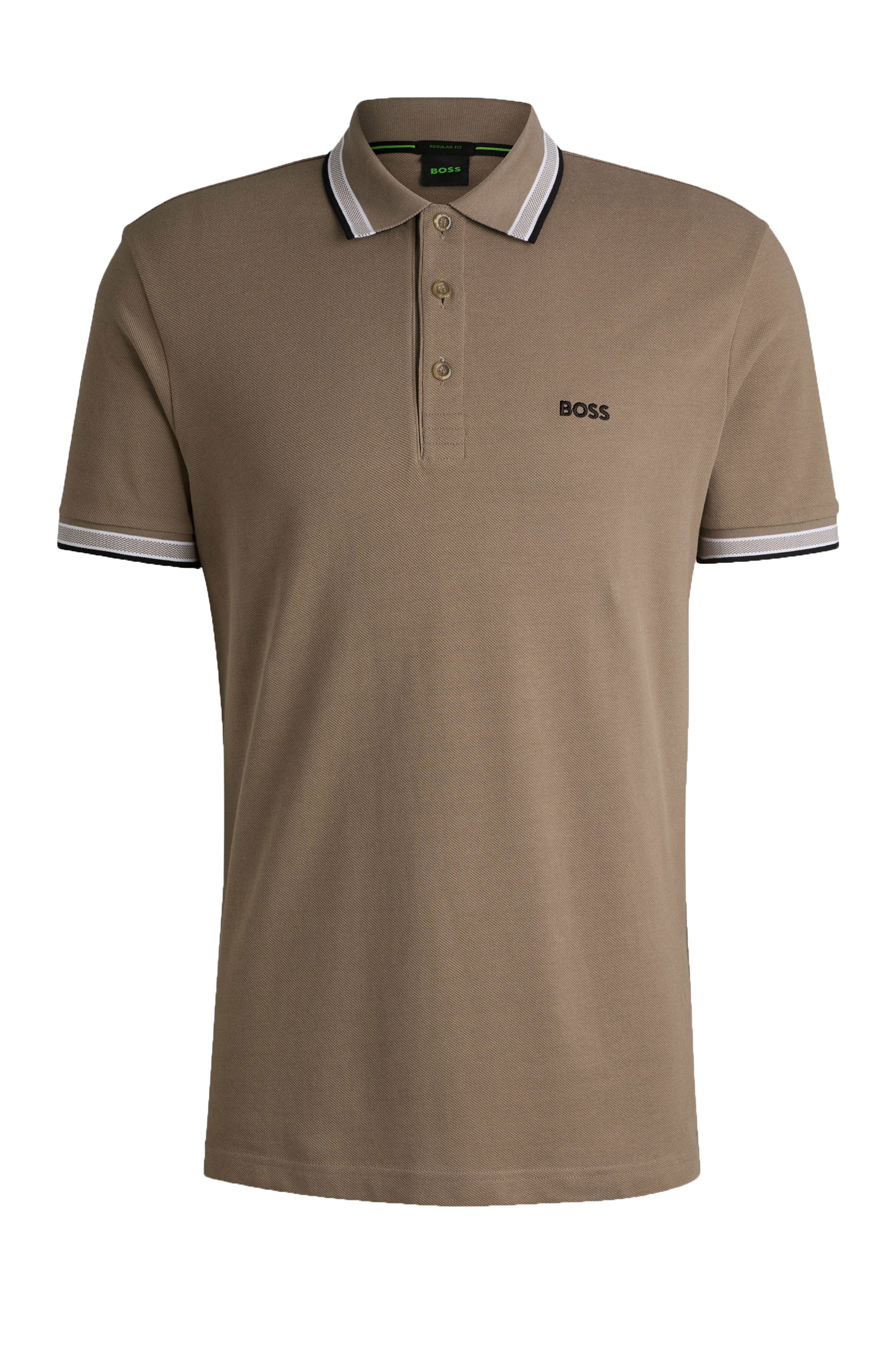 BOSS Green Mens Paddy Polo Shirt Light Pastel - Brown Cotton - Size Small