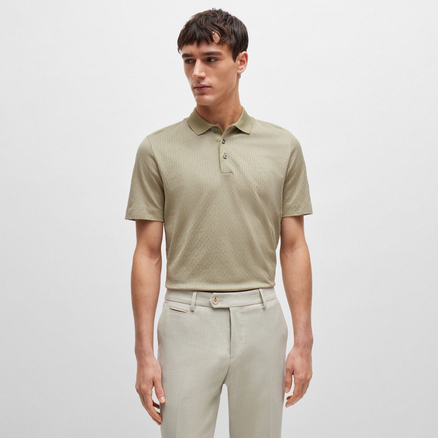 Boss Mens L-Perry 65 Regular-Fit Polo Shirt in Green Cotton - Size Large