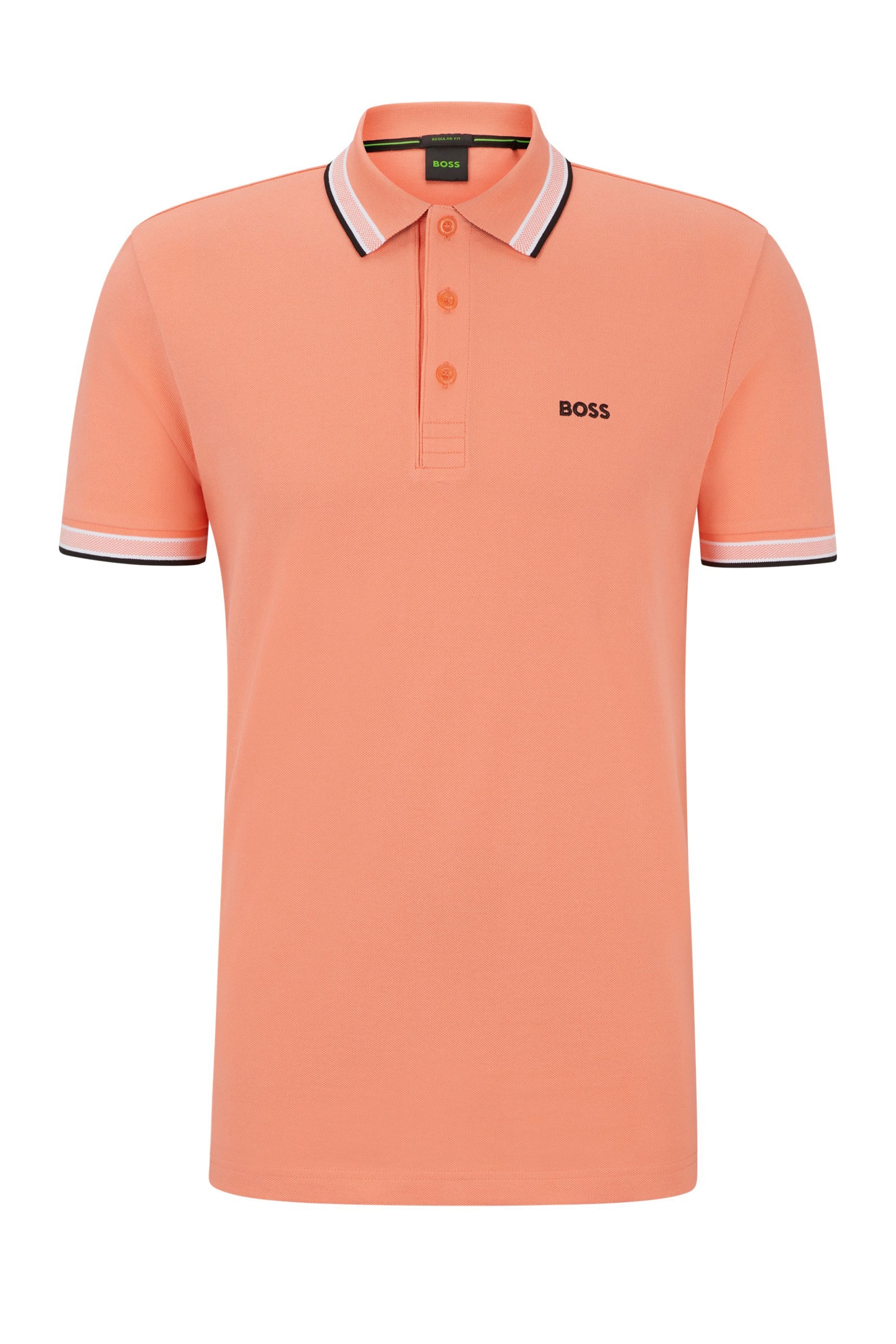 BOSS Green Mens Paddy Polo Shirt Open Red - Orange Cotton - Size Small