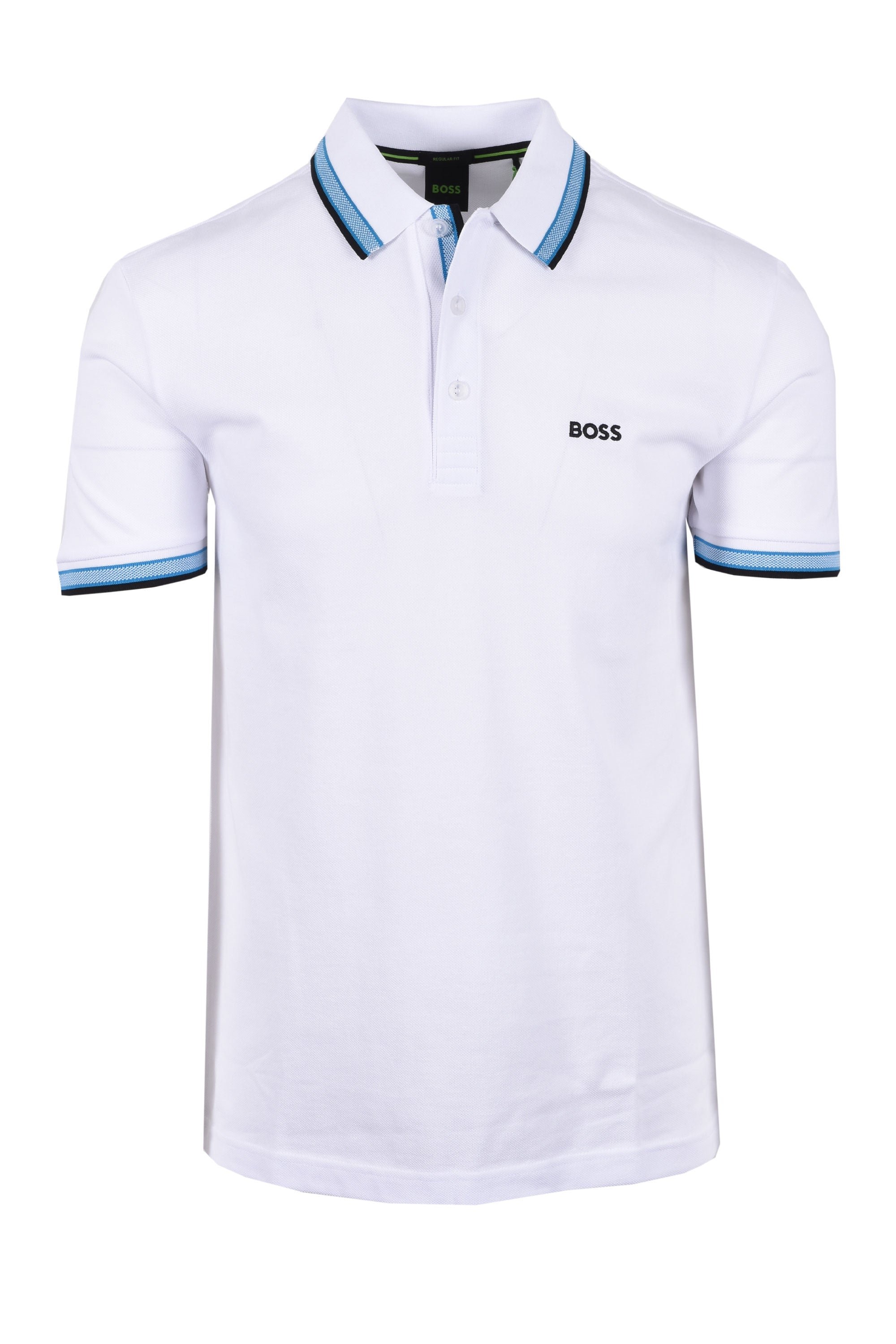 BOSS Green Mens Paddy Polo Open White with Blue - Size X-Large