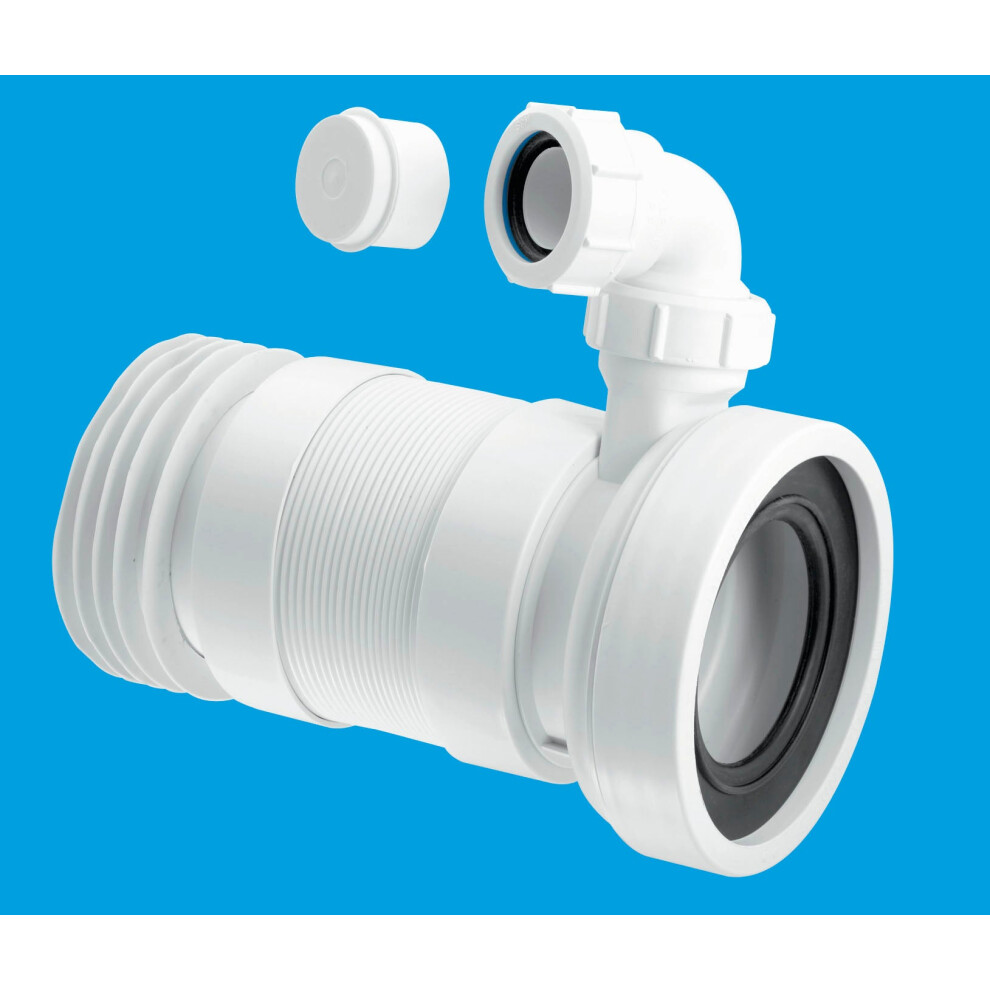 McAlpine WC-F23RV 97-107mm Inlet x 4"/110mm Outlet Flexible WC Connector with 1¼ Universal Vent Boss.