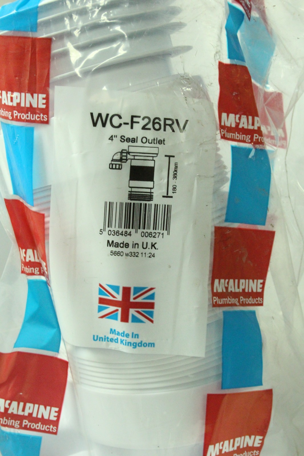 McAlpine WC-F26RV 97-107mm Inlet x 4"/110mm Outlet Flexible WC Connector with 1¼ Universal Vent Boss.