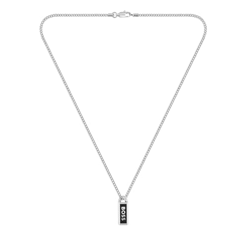 BOSS Jewelry Men's KASSY EMBLEM Collection Chain Necklace in Stainless Steel with a Black Enamel Pendant - 1580677