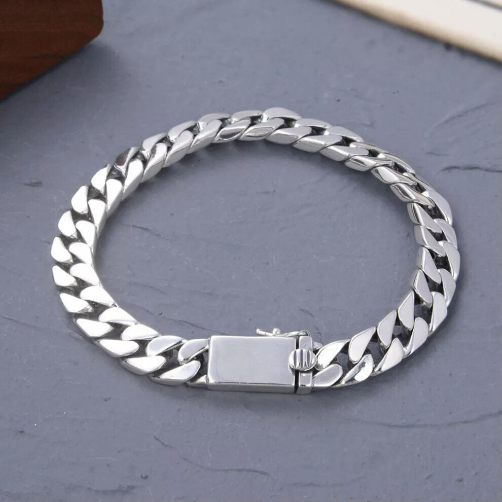 925 Silver Women's Men's 7 mm B Curb Chain Boss Bracelet 8.66 Inches L